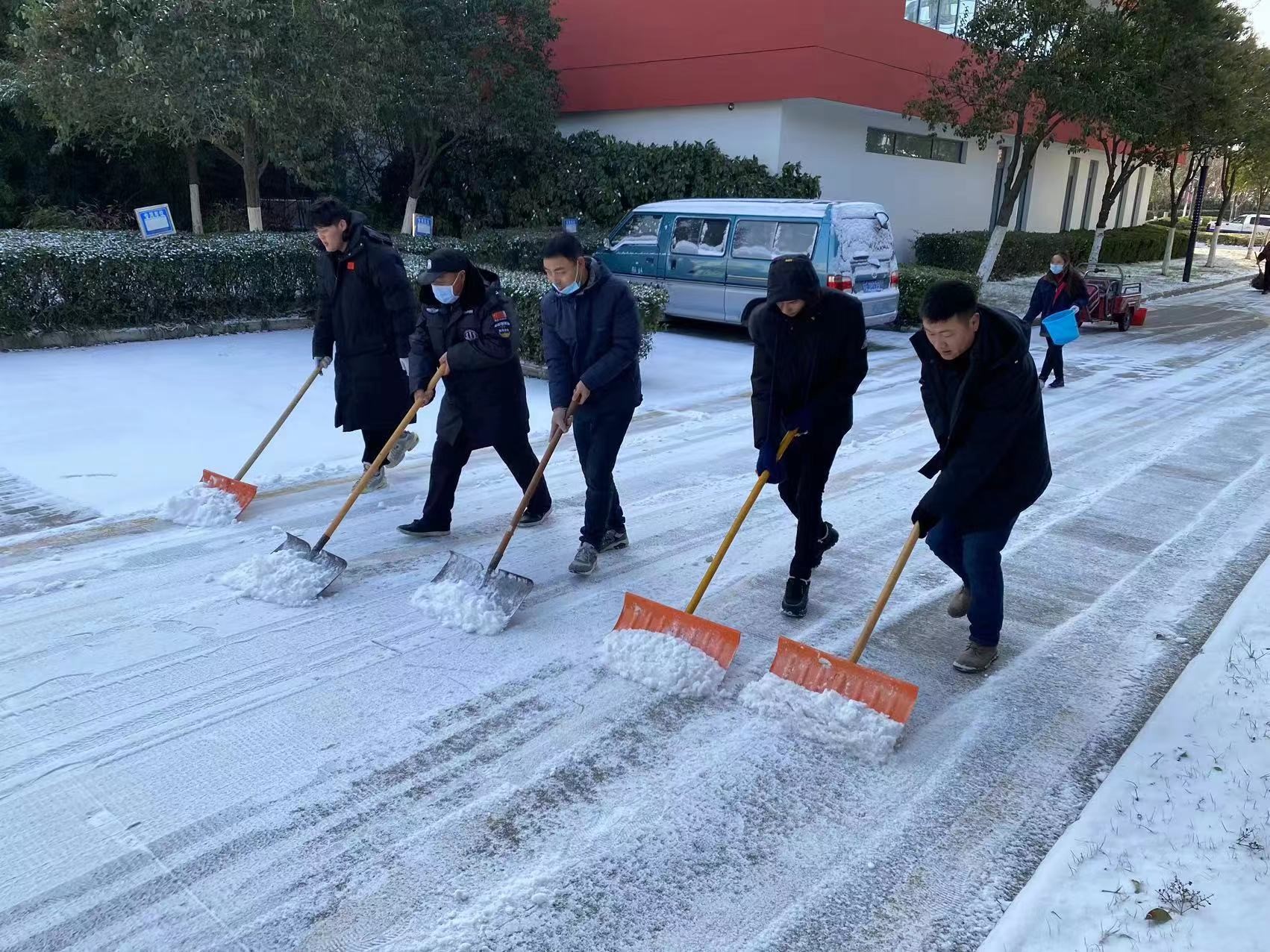 由于夜間雪情,道路積雪結(jié)冰,14日夜間,公司啟動(dòng)應(yīng)急預(yù)案,調(diào)集現(xiàn)場(chǎng)人員,利用掃把、鐵鍬針對(duì)各道口、坡道及主要行人路段開(kāi)展作業(yè),確保各項(xiàng)目道路通行順暢。