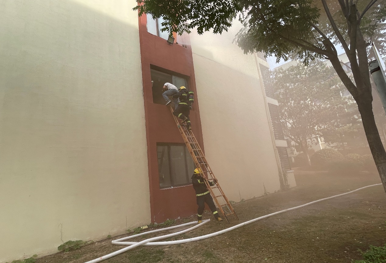 本次演練模擬的是電動自行車違規(guī)充電期間突發(fā)自燃的情景,園區(qū)公舍值班人員收到消防報警后,立即通知當(dāng)班安保隊長前往現(xiàn)場,核實后迅速啟動火災(zāi)應(yīng)急預(yù)案。演練過程中,園區(qū)公舍微型消防站義務(wù)消防員初期控制火勢發(fā)展,增援力量園區(qū)消防應(yīng)急救援大隊及時到場,各參演小組人員反應(yīng)迅速、處置規(guī)范、配合默契,最終成功將“火”撲滅,受困人員安全疏散至安全區(qū)域,達(dá)到了“快出警、能救援、善處置、保安全”的預(yù)定演練目標(biāo)。
