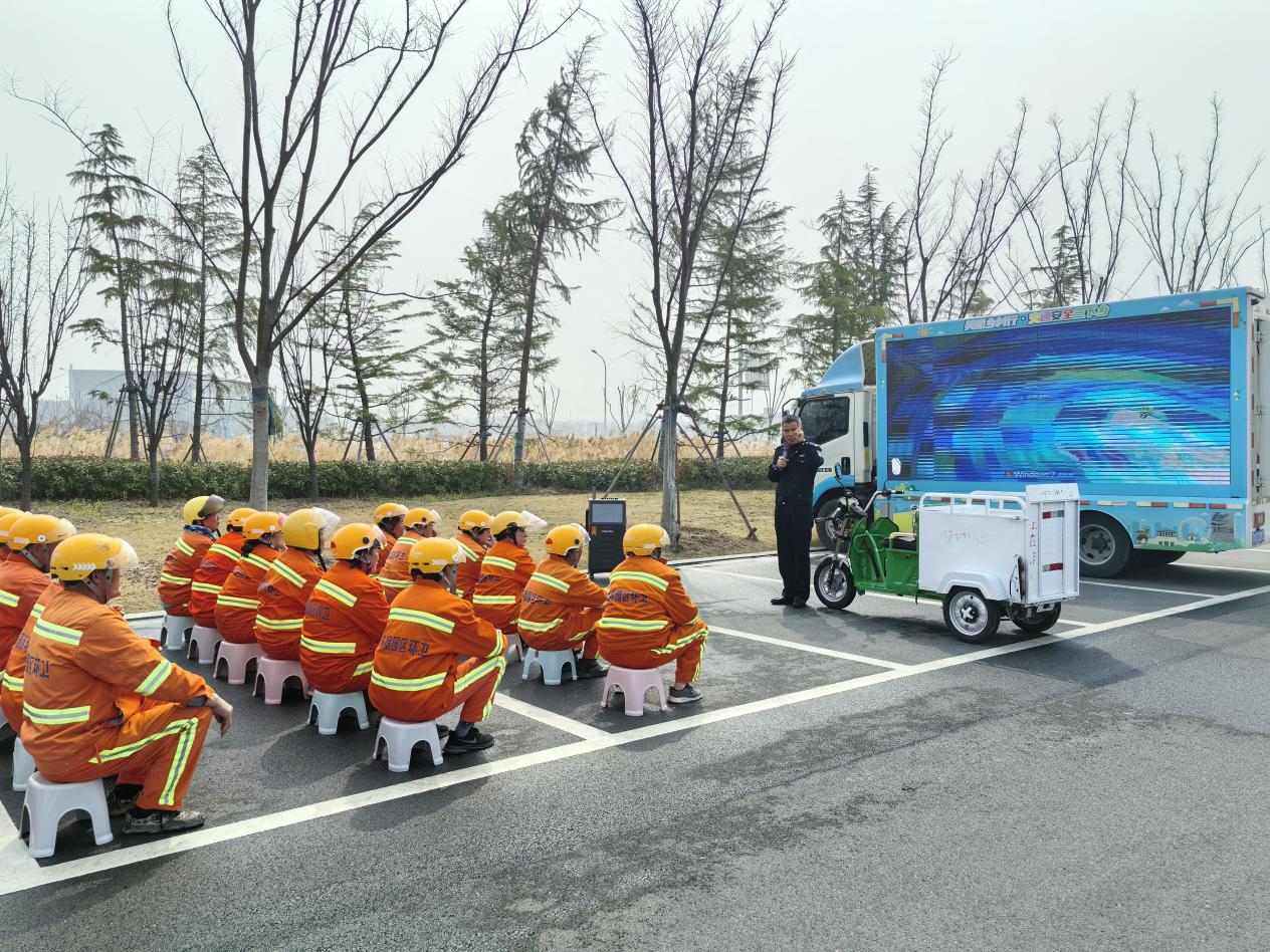 此外,警官同志還針對(duì)環(huán)衛(wèi)工人常見的交通違法行為,如逆行、闖紅燈、隨意橫穿馬路等,進(jìn)行了深入剖析,指出這些行為的危害性,重點(diǎn)講解了騎行電動(dòng)車的注意事項(xiàng)和安全頭盔的正確佩戴方法,提醒大家必須嚴(yán)格遵守交通規(guī)則,確保自身和他人的安全!