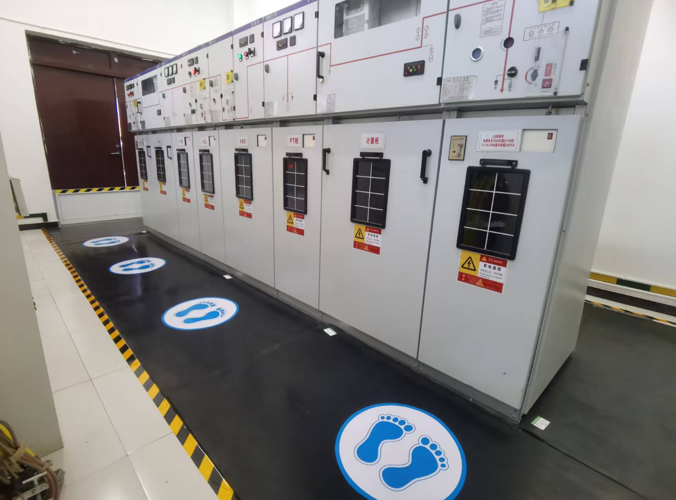 閘站作為防汛工作的重要設施,其配電房更是保障電力供應的關鍵樞紐,安全管理責任重大。建發(fā)公司嚴格遵循GB 2893-2008《安全色》國家標準,科學規(guī)劃、精準施策,在5所閘站配電房的操作區(qū)域規(guī)范設置地面警示標貼180米,安裝安全警示標貼28個。這些標識采用國際通用的安全色標,布局合理、醒目清晰,有效劃定了安全操作區(qū)域,為運維人員提供了明確的操作指引,顯著降低了誤操作風險,切實防范了觸電等安全事故的發(fā)生。