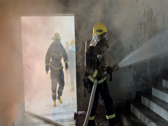 下午15點(diǎn)50分,科技物流園內(nèi)部突然起火,現(xiàn)場(chǎng)濃煙滾滾,相關(guān)工作人員立即采取自救措施,通知義務(wù)消防員有序組織人員疏散,消防官兵到場(chǎng)后,立即迅速組織對(duì)被困人員實(shí)施救援,及時(shí)堵截火勢(shì)、控制火情,經(jīng)過近30分鐘的滅火救援戰(zhàn)斗,大火被徹底撲滅,演練取得了圓滿成功。