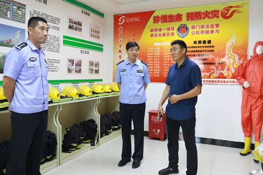 檢查結(jié)束后,步愛民局長對蘇宿工業(yè)園區(qū)園區(qū)公舍消防安全工作做出的努力表示肯定,對“安全生產(chǎn)月”期間消防安全保衛(wèi)工作提出了更高的要求:要進一步加強社會面火災(zāi)防控工作,把做好火災(zāi)的穩(wěn)定作為社會面火災(zāi)管控的第一任務(wù),認真排查公舍人員密集區(qū)的火災(zāi)隱患,牢牢抓住社區(qū)消防安全管理這個重點,對檢查中發(fā)現(xiàn)的隱患,要保持從嚴整治的高壓態(tài)勢。在全力抓好消防安全保衛(wèi)工作的落實上,要切實增強政治意識、大局意識、責(zé)任意識和憂患意識,抓住“落實”這個關(guān)鍵點,不發(fā)現(xiàn)問題不放過、不解決問題不撒手,把火災(zāi)隱患整治認真抓好,為建黨100周年創(chuàng)造良好的消防安全環(huán)境。