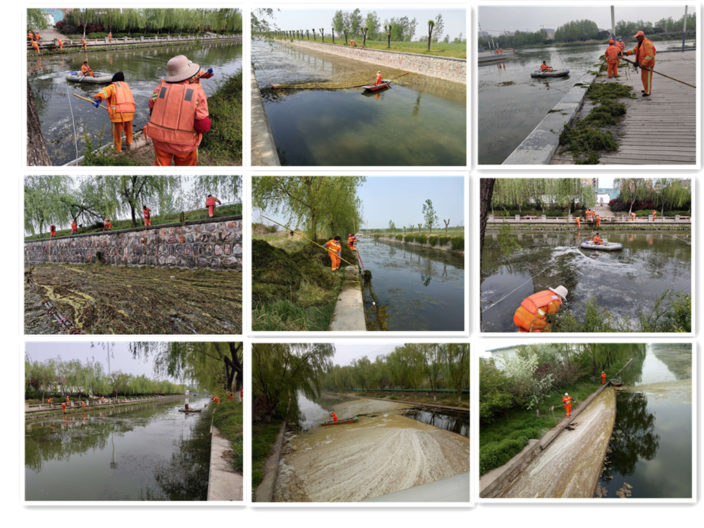 加強(qiáng)河道水草清理力度,提升河道水環(huán)境、保河道暢通。4月初,河道水草大量繁殖,園區(qū)利民河、蔡莊大溝等河道滋生了大量水草,給河道保潔帶來(lái)極大難度,為了盡快完成河道水草打撈工作,公司組建了河道清撈隊(duì),每天安排20名環(huán)衛(wèi)工人對(duì)河道進(jìn)行集中打撈,尤其是針對(duì)蔡莊大溝水淺、駁岸高、工作量大等情況,積極探索、創(chuàng)新工作方法,采用了“機(jī)械先行,人工輔助”的作業(yè)模式,作業(yè)效率大幅度提升,預(yù)計(jì)4月25日前全面完成河道水草打撈,重現(xiàn)園區(qū)“碧波潺潺、河暢水美”的河道景觀。
