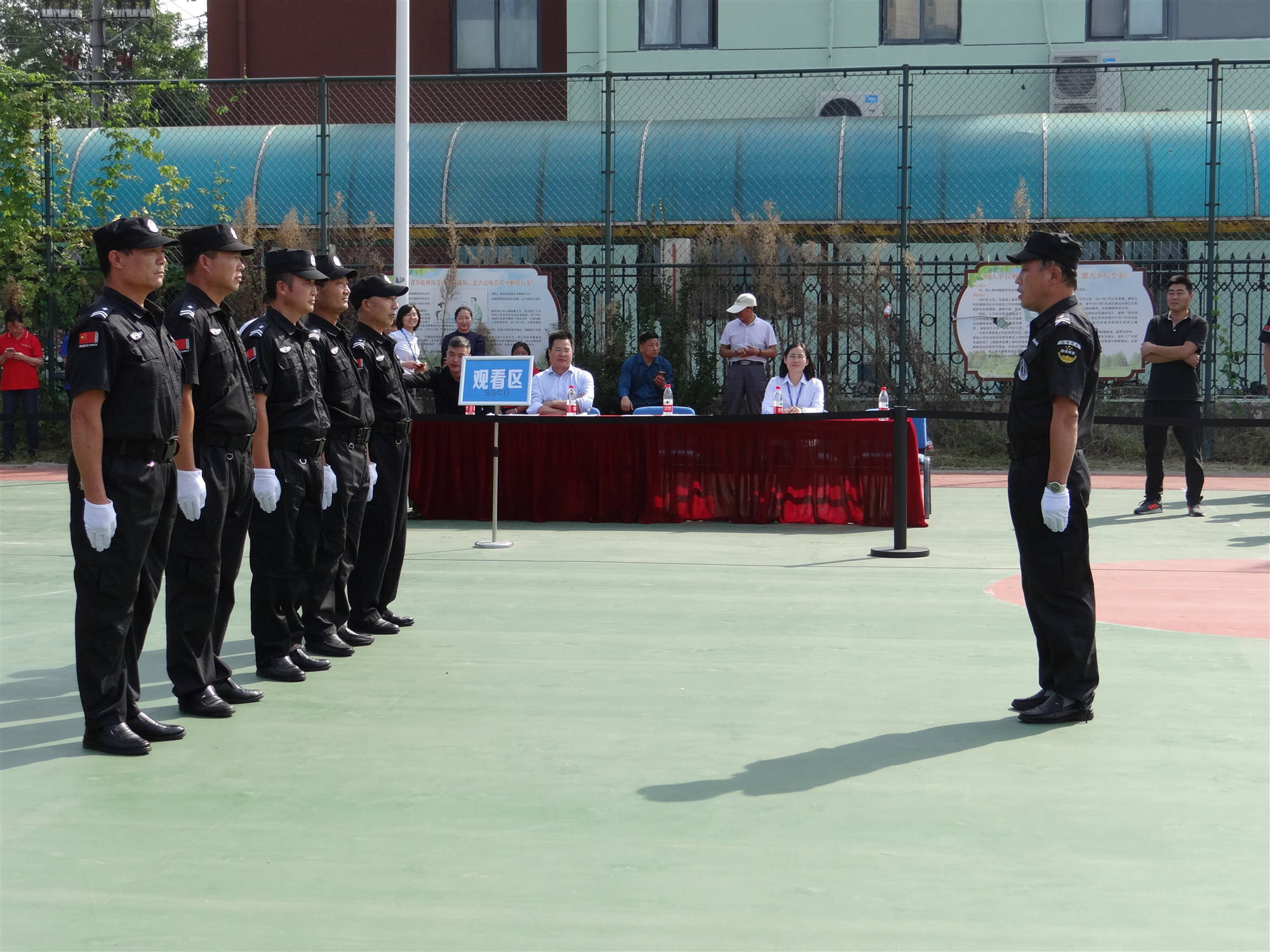 本次安保大比武活動(dòng)共有3家參賽隊(duì)伍,分別是蘇宿工業(yè)坊項(xiàng)目單位江蘇國保、園區(qū)公舍項(xiàng)目單位江蘇天翔、外國語學(xué)校項(xiàng)目單位蘇州君鼎代表隊(duì),共計(jì)60余人,各支隊(duì)伍紛紛選派精兵參加比拼。參賽隊(duì)伍一一進(jìn)行隊(duì)列展示,評委進(jìn)行統(tǒng)一打分,在3支參賽隊(duì)伍完成會(huì)操比賽后,又進(jìn)行了消防業(yè)務(wù)、體能等項(xiàng)目,現(xiàn)場你追我趕,體現(xiàn)了團(tuán)隊(duì)風(fēng)采。