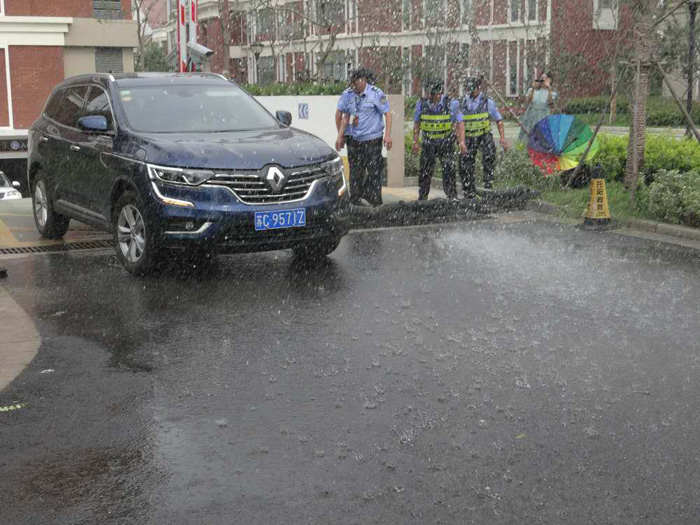 演練情景假設(shè)為下午3時突降暴雨,由于降雨量過大,現(xiàn)場地下停車場積水,存在車輛被淹的危險。在項目防汛應急小組指揮下,立即啟動了防汛應急預案, 24小時待命的各應急小組進入搶險狀態(tài),迅速分頭行動,疏散人員、設(shè)置擋水圍堰、抽排停車場積水,圓滿完成防汛應急搶險。
