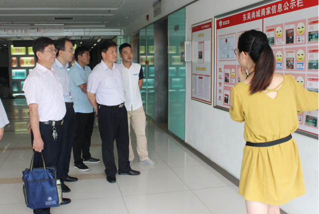 于堅強一行先后參觀了東吳尚城美食城和園區(qū)公舍餐廳,聽取了園區(qū)小餐飲集中區(qū)建設背景和運營狀況的介紹,并先后觀看了園區(qū)運用移動終端、二維碼等技術手段推動明廚亮灶、遠程監(jiān)管、社會共治的現(xiàn)場演示??疾熘校谔庨L對園區(qū)積極創(chuàng)新監(jiān)管手段,推動社會共治,將小餐飲管理出高標準給予了充分肯定,他要求建發(fā)公司要進一步創(chuàng)新監(jiān)管思路,加大食品管理力度,確保食品衛(wèi)生安全零事故。