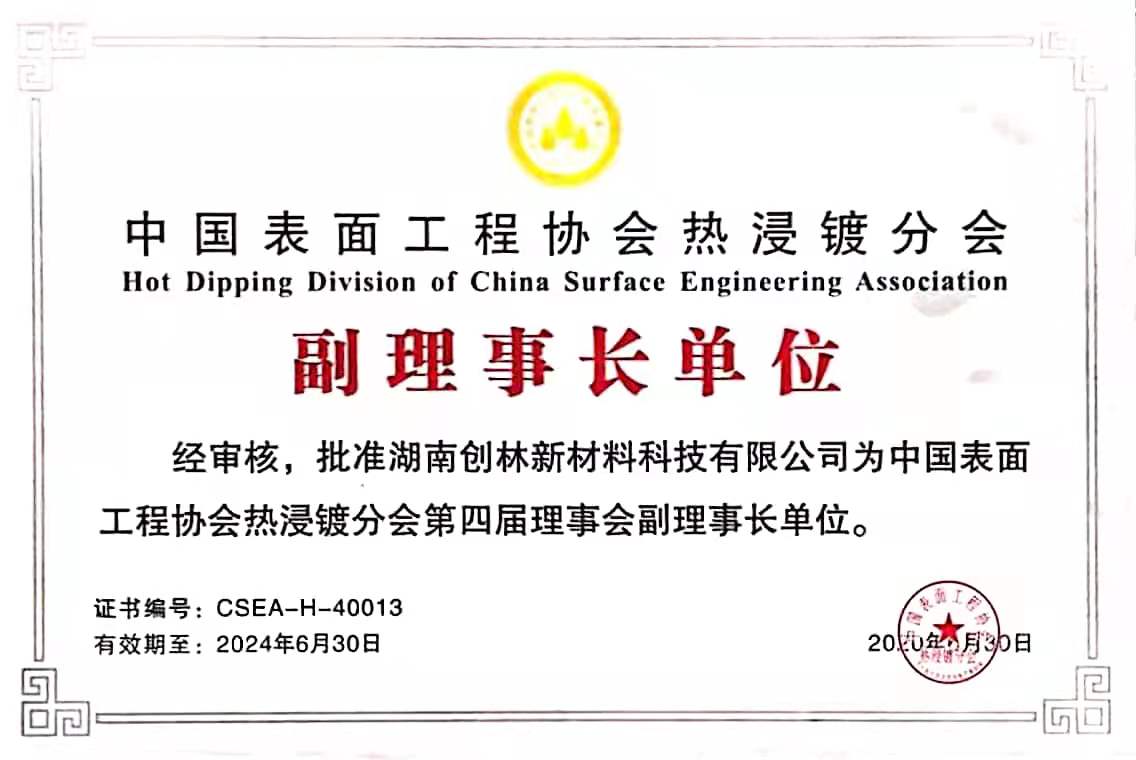 中國(guó)表面工程協(xié)會(huì)熱浸鍍鋅分會(huì)理事長(zhǎng)單位